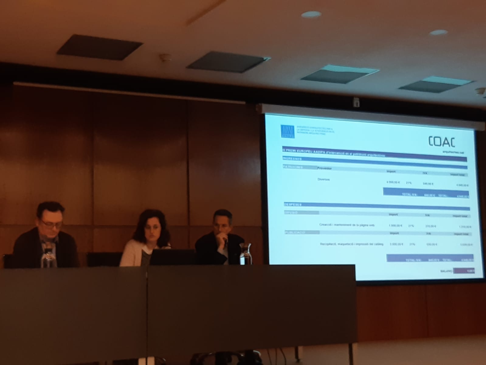 3. Ramon Calonge, codirector del Premi Europeu d’Intervenció en el Patrimoni Arquitectònic AADIPA, presenta el balanç final de la 4a edició del premi que es va entregar en el mes d’abril d’aquest any. S’explica el pressupost dels Premis.